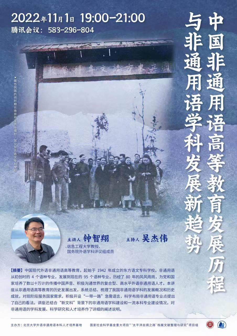 中国非通用语高等教育发展历程与非通用语学科发展新趋势 讲座预告