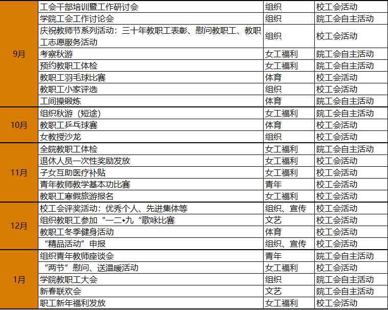 会议下发了《2019-2020学年广发在线平台工会工作计划》,学院工会在配合学校工会完成“规定动作”之外,积极开展很多深受教师喜爱的“自主活动”,例如涵盖在职和离退休教师的春秋游、各种节日的慰问、组建文体社团、组织青年教师座谈会、召开学院教职工大会、举办新春联欢会等丰富多彩的活动。在活动中,各位工会委员各司其职,亲密配合,提前规划,通力协作,全力打造外院工会一个又一个精品活动。