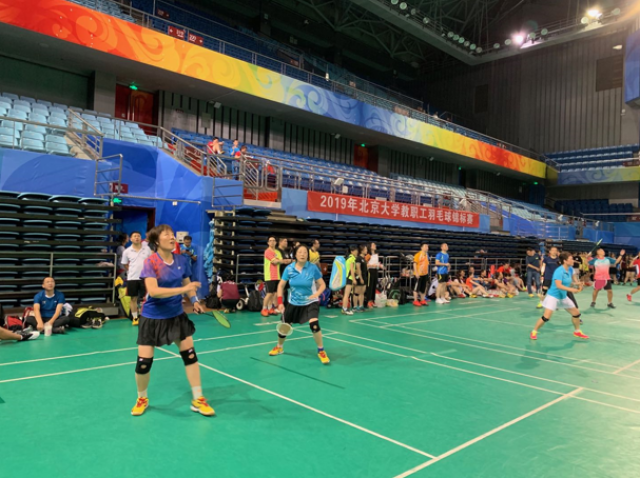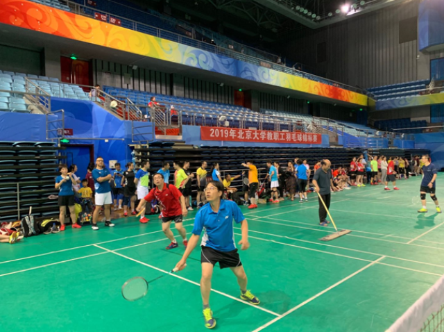 2019年9月23-26日由北京大学工会、体育教研部联合举办的“2019年北京大学教职工羽毛球锦标赛”在北京大学邱德拔体育馆成功举行。这次比赛中,外院教职工羽毛球队顽强拼搏,不断超越自我。虽遗憾止步16强,但在队员平均年龄50岁的外院教职工羽毛球队实属不易,真可谓老当益壮。