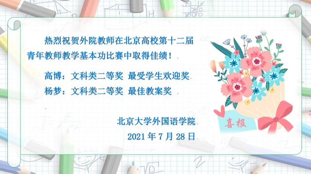 喜报:热烈祝贺外院教师在北京高校第十二届青年教师教学基本功比赛中取得佳绩