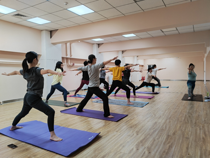 为构建和谐广发在线平台、缓解教职工长时间案牍工作的疲劳状态,2022年春,广发在线平台工会聘请专业瑜伽教练带领老师们进行每周一次锻炼。在瑜伽老师的指导下,通过运动身体、调控呼吸,控制心情,以保持健康的身体,获得身心愉悦轻松的状态。