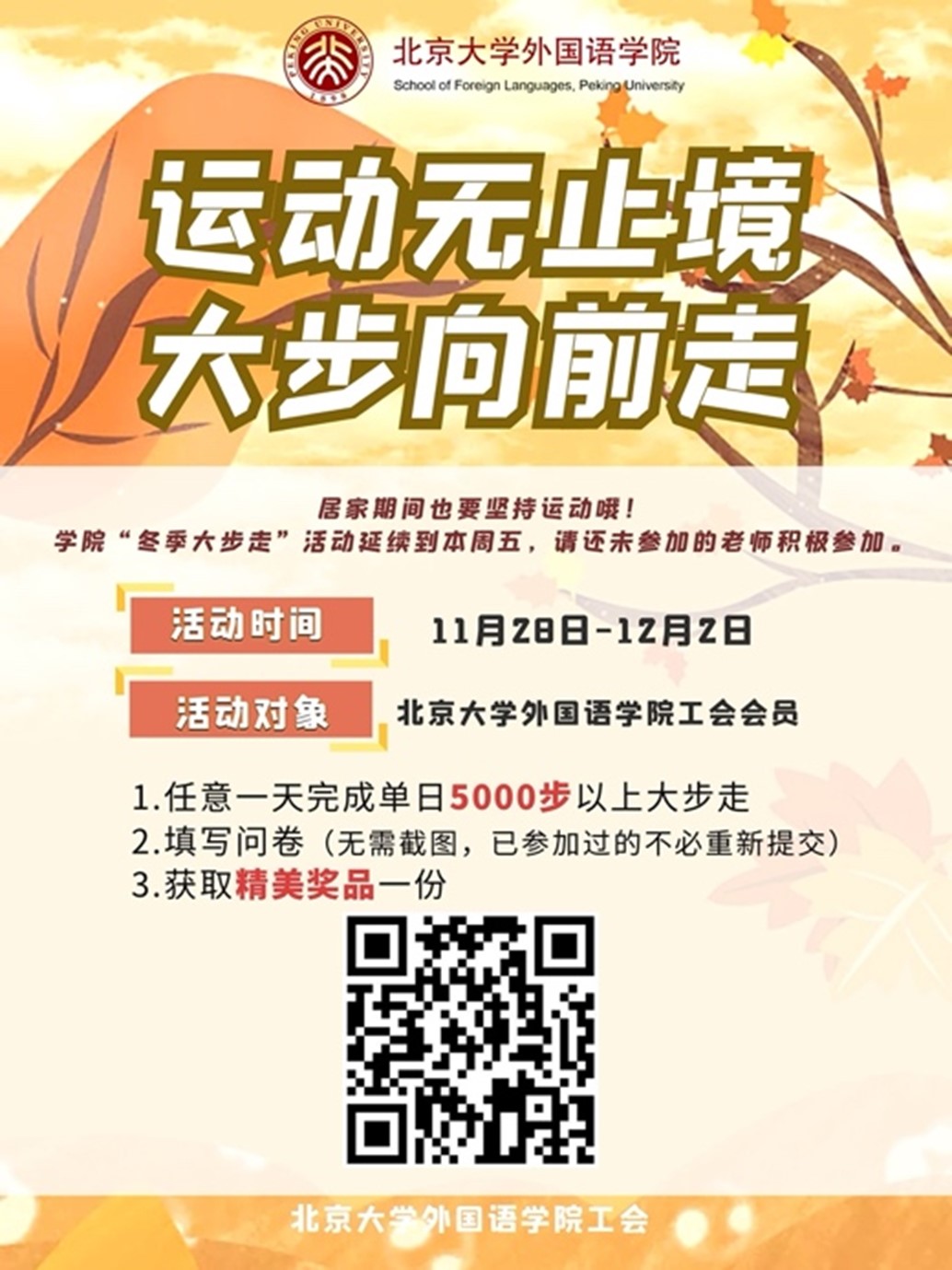 外院工会为每位参与大步走活动的老师们准备了精美自选礼品。疫情当下,希望各位老师做好自身防护,保重身体。期盼疫情可以早日消退,我们可以早日线下相见!(撰稿人:苏晓)