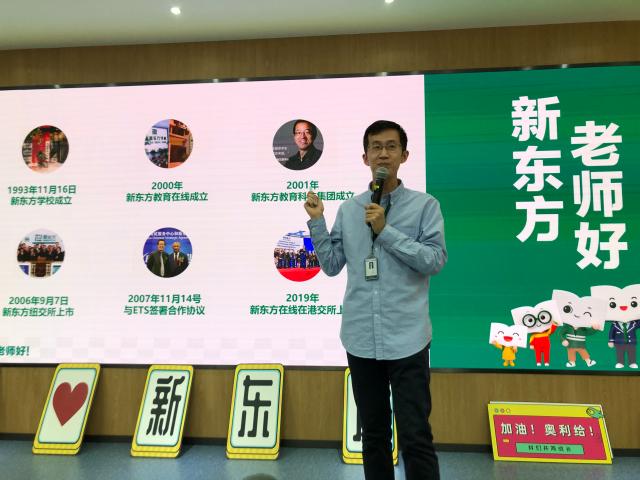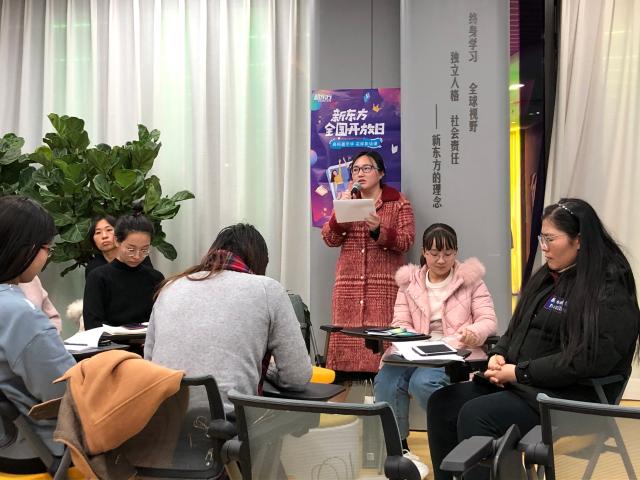 北京新东方优能中学部总监助理、集团优秀教师李冉结合个人经历,为大家介绍了他眼中的“新东方”。李冉提到,在新东方他成长了很多,通过三个月的岗前培训看到了自身的优势与不足,与资深名师的接触让他对教学方法精益求精,他十分感谢在新东方的一切经历。通过李冉老师的讲述,大家对新东方的企业文化又有了更深的了解。