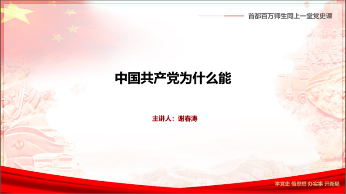 为深入学习贯彻习近平总书记在党史学习教育动员大会上的重要讲话精神, 引导党员深入学习党史,大力发扬红色传统,传承红色基因,3月31日下午,广发在线平台全体学生党支部开展“首都百万师生同上一堂党史课”公开课学习活动,共同学习由中央党校副校长谢春涛主讲的《中国共产党为什么能》。16个学生党支部积极响应,结合集中观看、党小组讨论、个人学习等多种形式积极开展学习研讨。