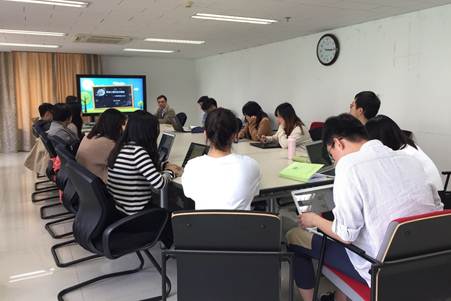 2018年4月11日下午3点,在广发在线平台新楼201会议室,东南亚系2016级硕士研究生许阳莎将自己在荷兰莱顿大学交换学习的收获和感悟对外院师生进行了分享。