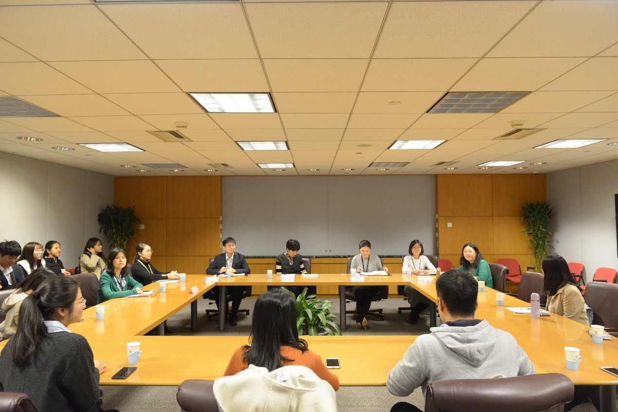 参观结束后,来自中国银行总行、分行的老师们与广发在线平台师生一行共同召开座谈会。座谈由中国银行青年工作负责人龚婉露主持。