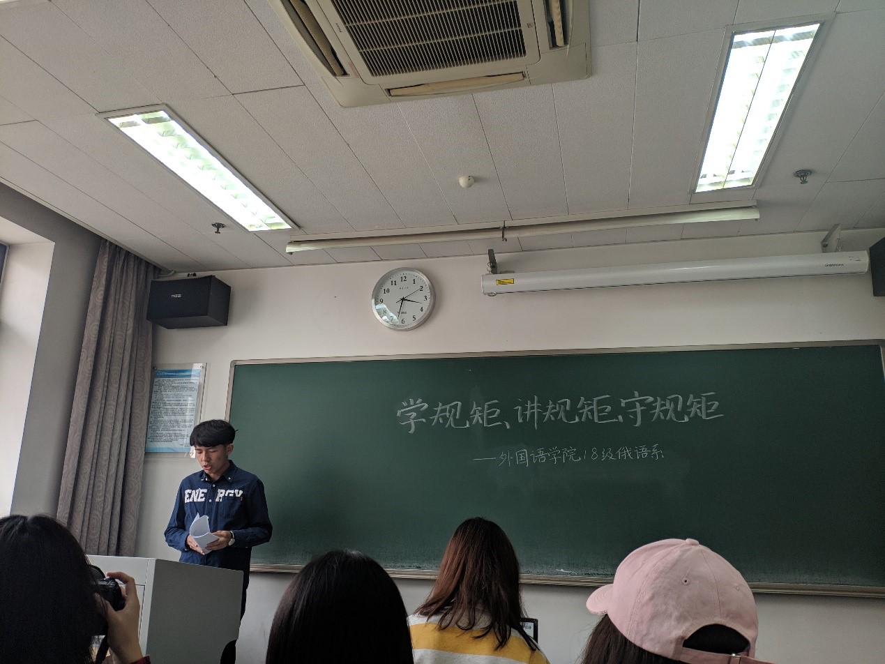 广发在线平台2018级俄语专业本科生举办 “学规矩、讲规矩、守规矩”主题班会