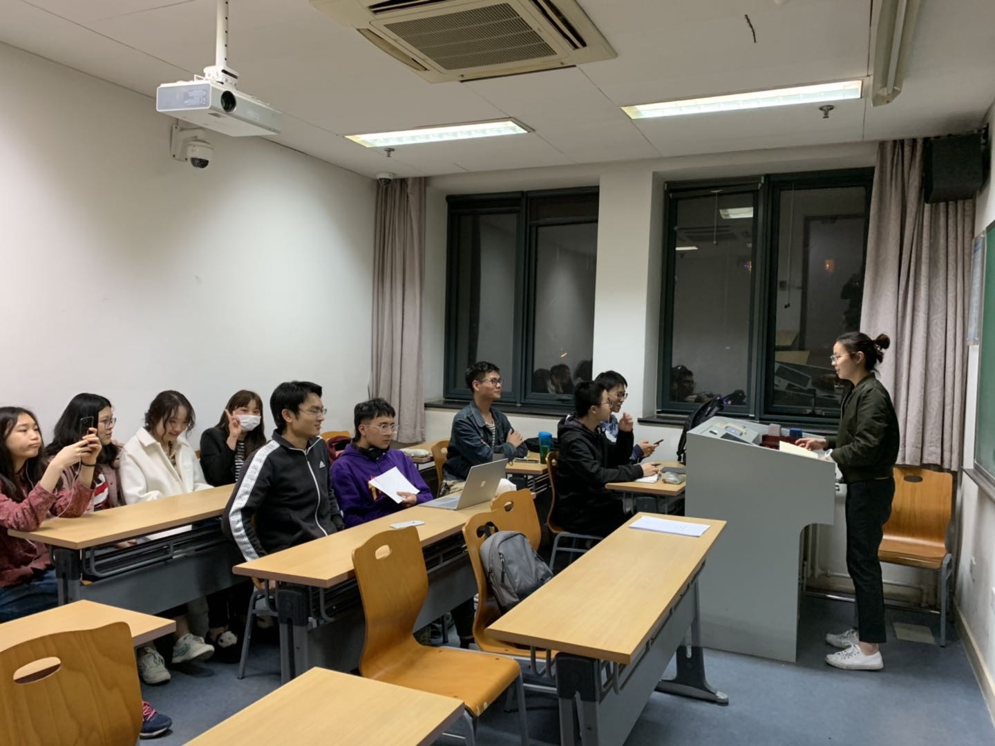 2019年4月18日20:40,广发在线平台2018级法语专业本科生班在四教407举办“学规矩、讲规矩、守规矩”主题活动,2018级法语专业所有本科生均参加了班会,学习活动由班长宋若瑾主持,辅导员李涛为同学们宣讲校规校纪。