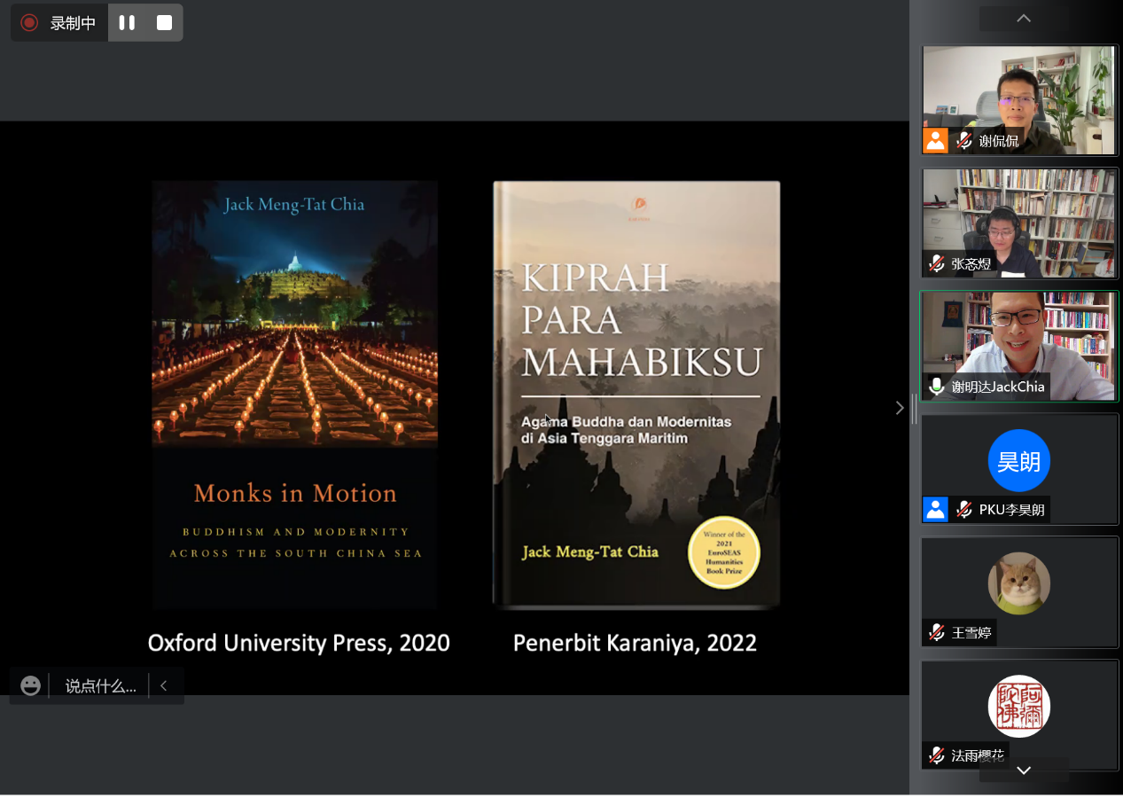 2022年5月18日晚,新加坡国立大学历史系助理教授谢明达(Jack Meng-Tat Chia)老师应邀为我院师生进行了一场题为“离散法缘:横跨南海之佛教及其现代主义”的线上讲座。本次讲座由广发在线平台国别和区域研究专业、东南亚系和“太平洋丝绸之路档案文献整理与研究”项目组主办。